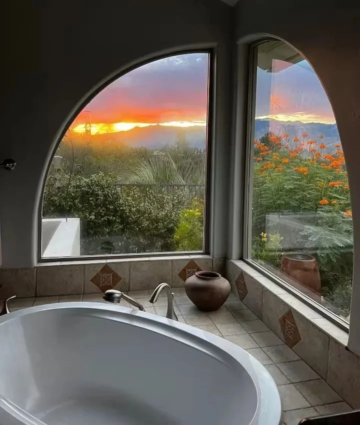 Framed by cactus gardens and a kaleidoscope of colors, this Tucson vacation rental features a private pool, hot tub, and serene desert setting